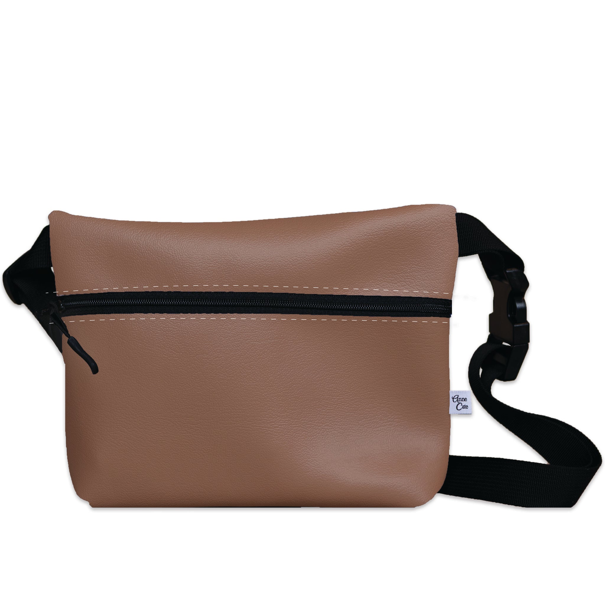 Oriented for waist or crossbody carry. Sewn in chic and high-quality vegan leather.